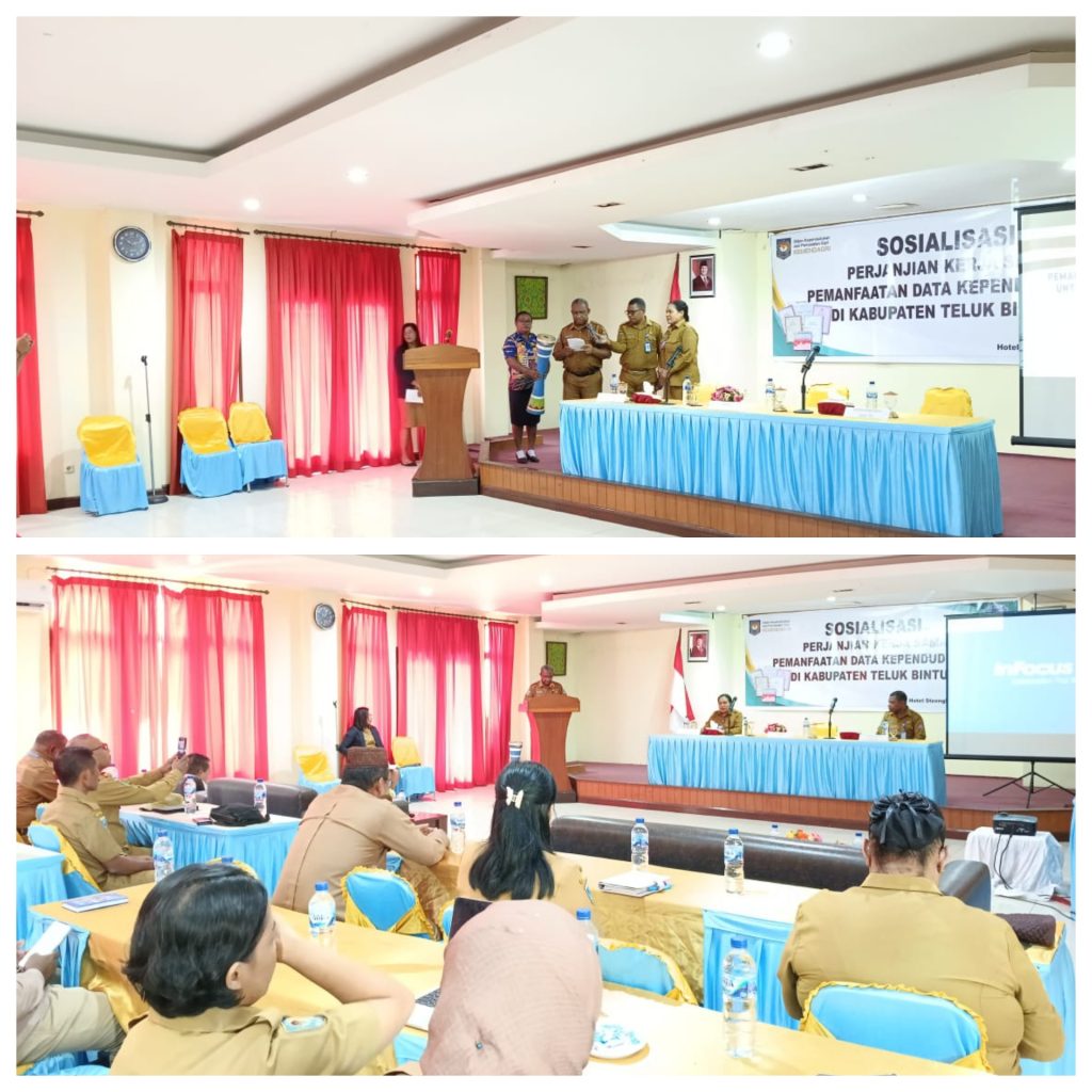 Teluk Bintuni, IndikatorNews.co.id – Pemerintah Kabupaten Teluk Bintuni melalui Dinas Kependudukan dan Pencatatan Sipil (Disdukcapil) menggelar sosialisasi perjanjian kerja sama pemanfaatan data kependudukan, Senin (11/8/2025).