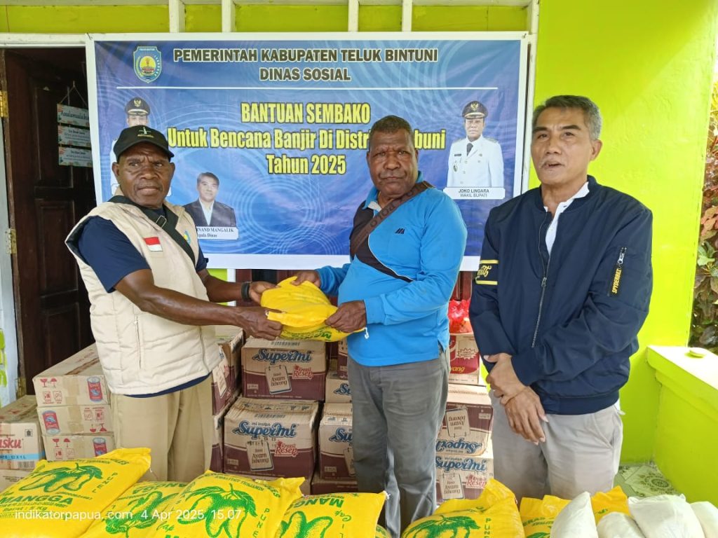 Teluk Bintuni, Indikatornews.co.id – Dinas Sosial (Dinsos) Kabupaten Teluk Bintuni menyalurkan bantuan bahan pokok kepada 100 Kepala Keluarga (KK) terdampak banjir di tiga kampung yang berada di Distrik Tembuni. Bantuan tersebut diserahkan langsung oleh Kepala Dinsos Teluk Bintuni, Ferdinan Mangalik, didampingi Kepala Bidang Pemberdayaan Sosial Penanganan Fakir Miskin, Benny Ahoren, pada Jumat (4/4/2025).
