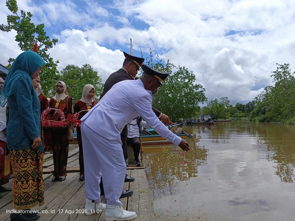 Kegiatan tabur bunga di Dermaga GT Sebyar Rejosari ini menjadi rangkaian peringatan HUT ke-80 Kemerdekaan RI di Distrik Tomu, sekaligus wujud penghargaan atas jasa pahlawan dalam menegakkan kedaulatan bangsa. (Wn).