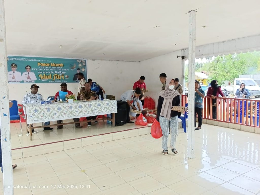Teluk Bintuni, Indikatornews.co.id – Pemerintah Kabupaten Teluk Bintuni melalui Dinas Perindustrian, Perdagangan, Koperasi, dan UMKM menggelar pasar murah menjelang Idul Fitri 1446 H/2025. Kegiatan ini berlangsung di Kampung Banjar Ausoy SP4, Distrik Menimeri, Kamis (27/3/2025), sebagai bagian dari program 100 hari kerja Bupati dan Wakil Bupati Teluk Bintuni.