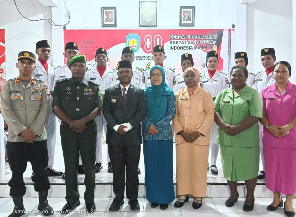 Teluk Bintuni, IndikatorNews.co.id – Kepala Distrik Tomu, Syamsul Inay, memimpin langsung upacara pengukuhan Pasukan Pengibar Bendera Pusaka (Paskibraka) tingkat Distrik Tomu dalam rangka peringatan Hari Ulang Tahun ke-80 Kemerdekaan Republik Indonesia, Jumat (15/8/2025).