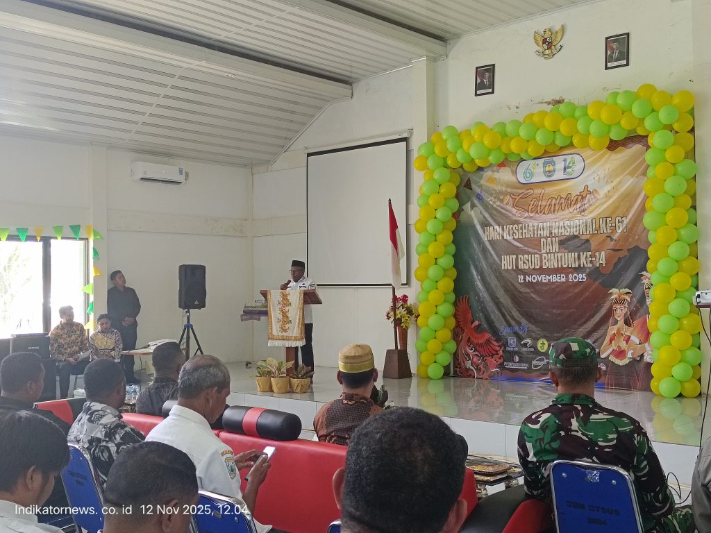 Teluk Bintuni, IndikatorNews.co.id – Wakil Bupati Teluk Bintuni, Joko Lingara, menghadiri peringatan Hari Kesehatan Nasional ke-61 dan Hari Ulang Tahun RSUD Teluk Bintuni yang ke-14, berlangsung di Aula RSUD Teluk Bintuni Km 7. Acara yang berlangsung meriah itu dihadiri seluruh staf, dokter, dan tenaga medis RSUD Teluk Bintuni, serta tamu undangan dari anggota DPR Papua Barat, termasuk Pimpinan dan anggota DPRK Bintuni serta tokoh dan pihak terkait lainnya. Rabu (12/11/2025).