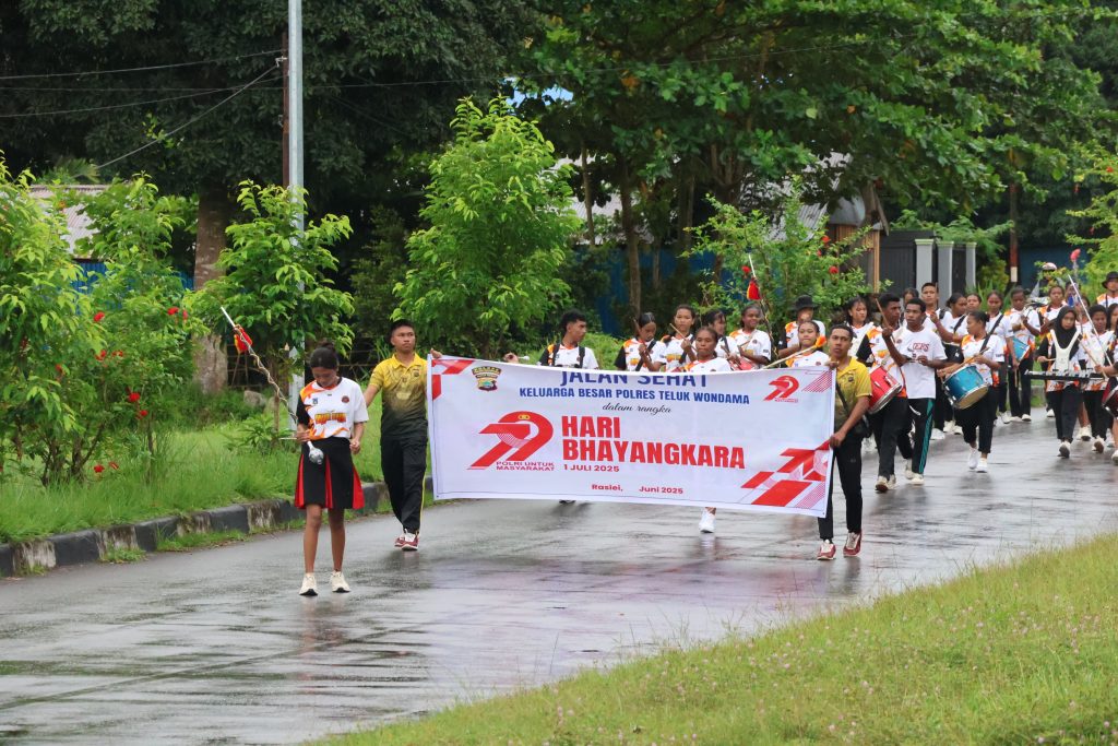 Wondama, IndikatorNews.co.id – Menyambut Hari Bhayangkara ke-79, Kepolisian Resor (Polres) Teluk Wondama menggelar kegiatan jalan sehat bersama keluarga besar Polres, Rabu pagi, (25/6/2025). Kegiatan yang berlangsung penuh semangat kekeluargaan ini menempuh rute dari Mapolres Teluk Wondama, melewati Kampung Isey, dan berputar di pertigaan SMP Negeri Rasiei sebelum kembali finis di halaman Mapolres.
