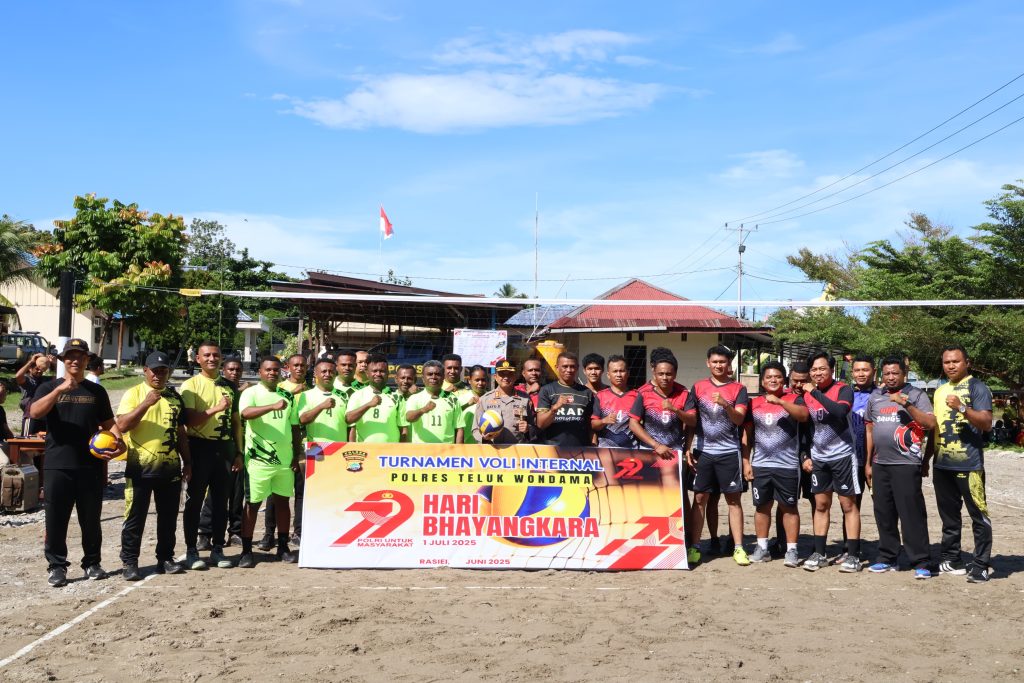 Wondama, IndikatorNews.co.id – Dalam rangka memeriahkan Hari Bhayangkara ke-79 tahun 2025, Polres Teluk Wondama menggelar pertandingan bola voli antar fungsi, Senin (30/6/2025) pagi. Kegiatan ini secara resmi dibuka oleh Kapolres Teluk Wondama, AKBP Bayu Dewasto, S.H., S.I.K., M.H., didampingi Wakapolres Kompol Cristianus M. Masalle, S.H.