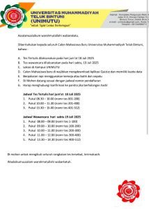 – Sebanyak 521 calon mahasiswa Universitas Muhammadiyah Teluk Bintuni (UNIMUTU) mengikuti tes tertulis sebagai bagian dari proses seleksi masuk perguruan tinggi tersebut. Pelaksanaan ujian berlangsung pada Jumat, (18/7/2025), dan bertempat di kampus UNIMUTU, Kabupaten Teluk Bintuni, Papua Barat.