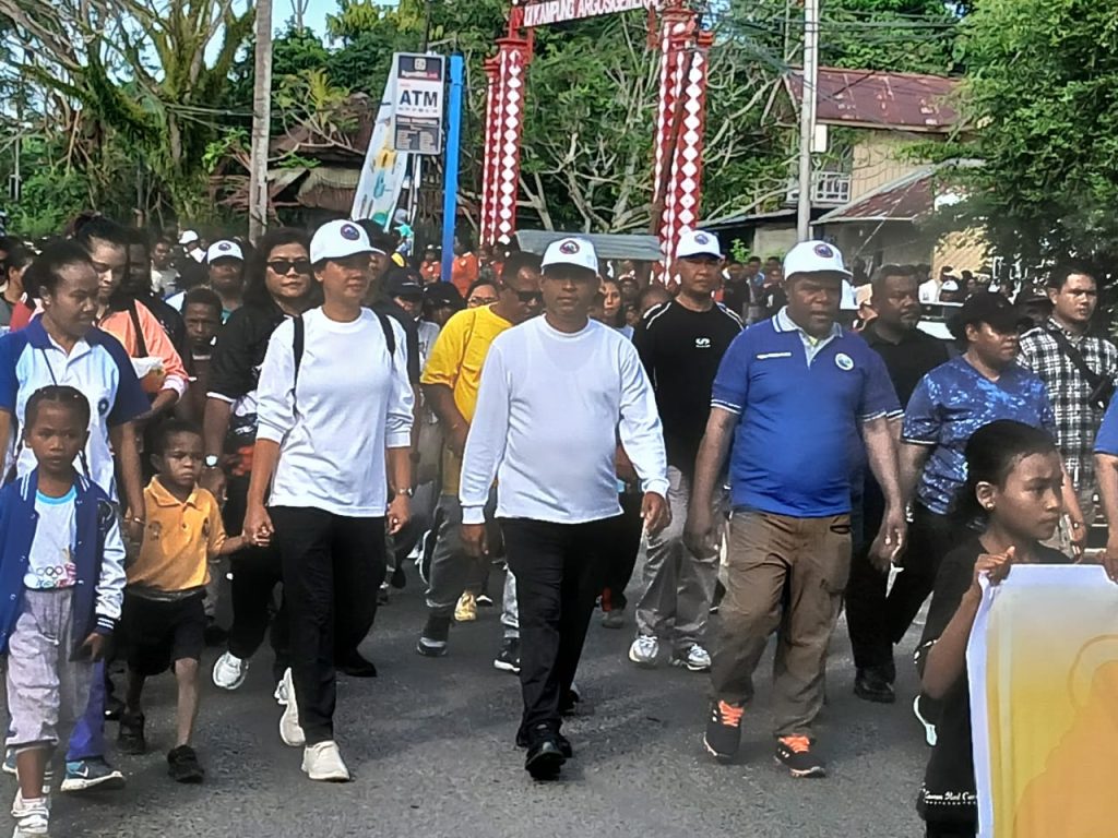 Teluk Bintuni, IndikatorNews.co.id – Bupati Teluk Bintuni Yohanis Manibuy, SE., MH., melepas secara resmi peserta jalan santai dalam rangka memperingati Hari Ulang Tahun (HUT) Pekabaran Injil ke-115, Rabu (15/10/2025). Kegiatan yang berlangsung penuh semangat kebersamaan dan sukacita iman ini dimulai dari depan Gereja Ebenhezer SP 5 dan berakhir di Kantor Klasis GKI Teluk Bintuni.
