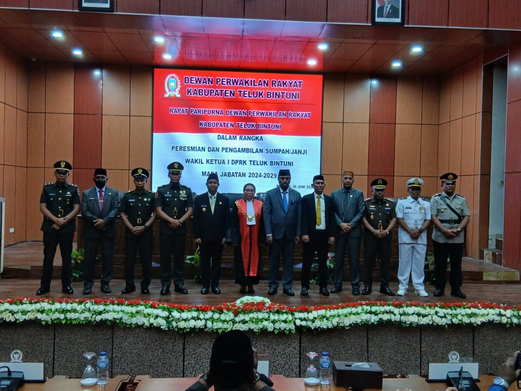 Teluk Bintuni, IndikatorNews.co.id – Formasi pimpinan DPRK Teluk Bintuni kini lengkap setelah Sugandi, politisi dari Fraksi Golkar, resmi dilantik sebagai Wakil Ketua I masa jabatan 2024–2029. Prosesi pengambilan sumpah digelar dalam rapat paripurna istimewa di ruang sidang DPRK Km 5, Distrik Bintuni, Kamis (26/6/2025).