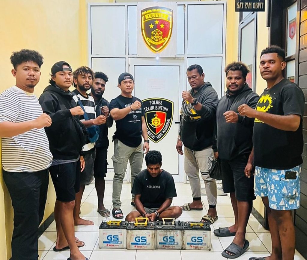 Tim Macan Gunung Polres Teluk Bintuni Amankan Terduga Pelaku Pencurian Aki